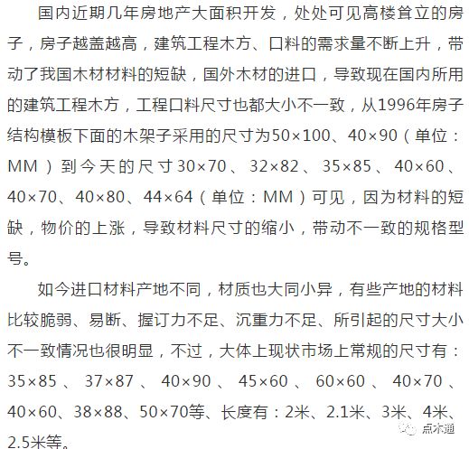 建筑用的工程木方尺寸:
